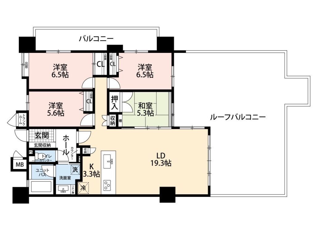 4LDK(和 5.3 / 洋 6.5・5.6・5.5 / LDK 22.6)