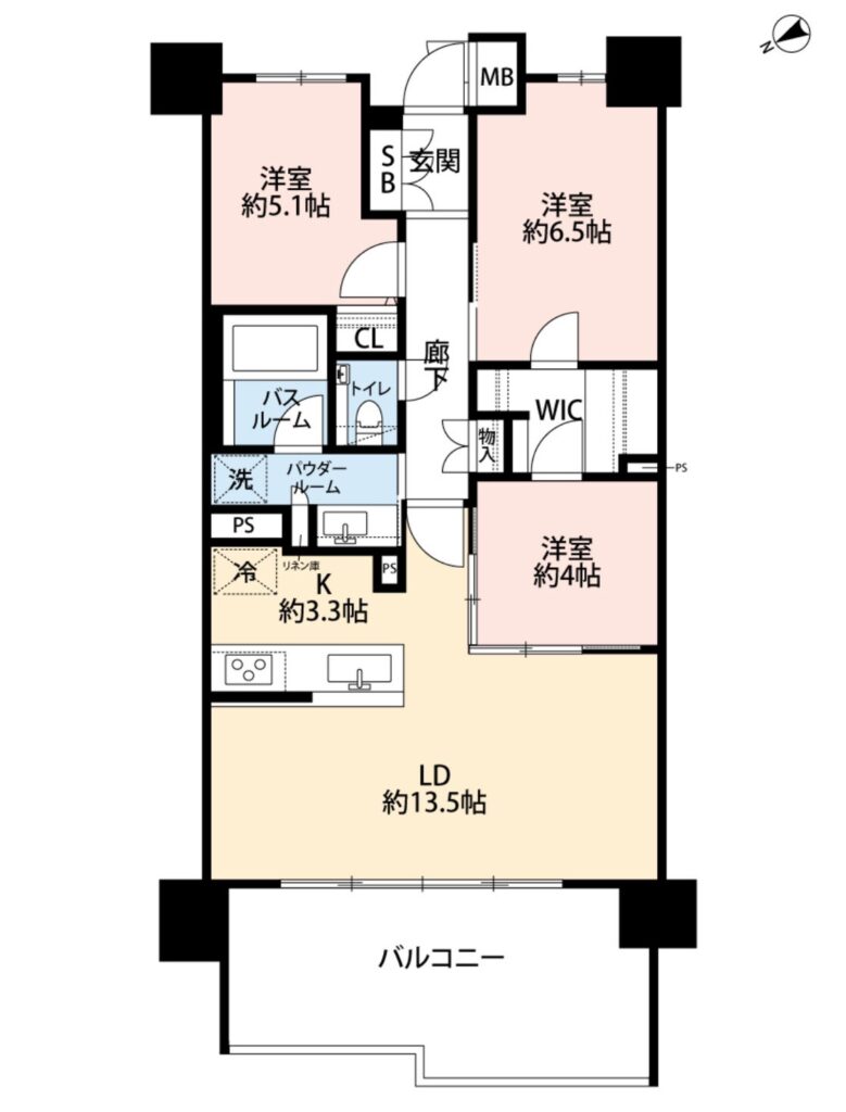 3LDK(洋 6.5・5.1・4 / LDK 16.8)