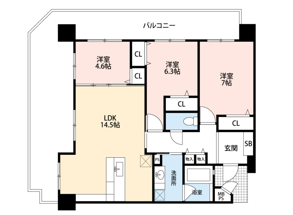 3LDK(洋 7・6.3・4.6 / LDK 14.5)