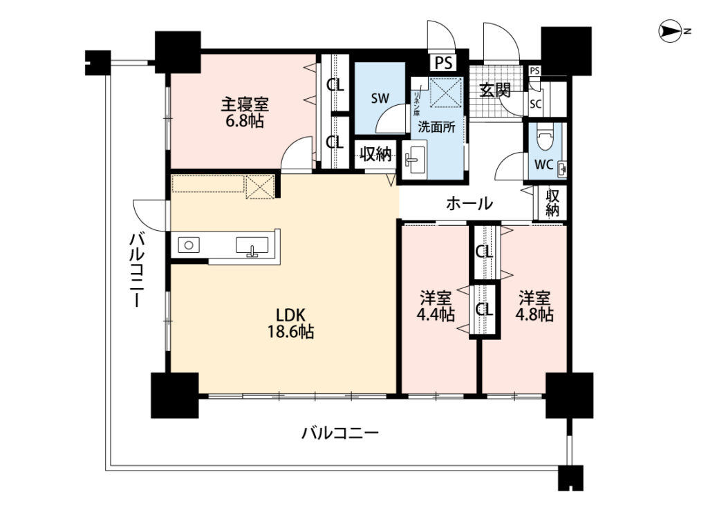 【10階角部屋80㎡超!広々L字ワイドバルコニー物件が那覇曙に登場!】那覇市曙に佇む14階建てマンション。その10階角部屋を今回はご紹介。10階角部屋×L字バルコニー×シティビューという三拍子そろった物件です。二方向に開くL字バルコニーから望む海の景色は、この物件ならではの大きな魅力!LDK18.6帖の広々とした空間を中心に、6.8帖・4.8帖・4.8帖の3部屋構成。子ども部屋、寝室、在宅ワークスペースなど家族のライフスタイルに合わせて使い方が広がります。対面式カウンターキッチンで家族の様子を見守りながら料理できる動線も嬉しいポイント。バス停まで徒歩3分、スーパーまで徒歩3分と生活利便性良し。小学校まで徒歩6分でお子様の登下校も心配なし。ペット可なので、大切な家族も一緒に新生活をスタートできます。即日内覧可能です!!角部屋×街景色という贅沢を、日常にしてみませんか?