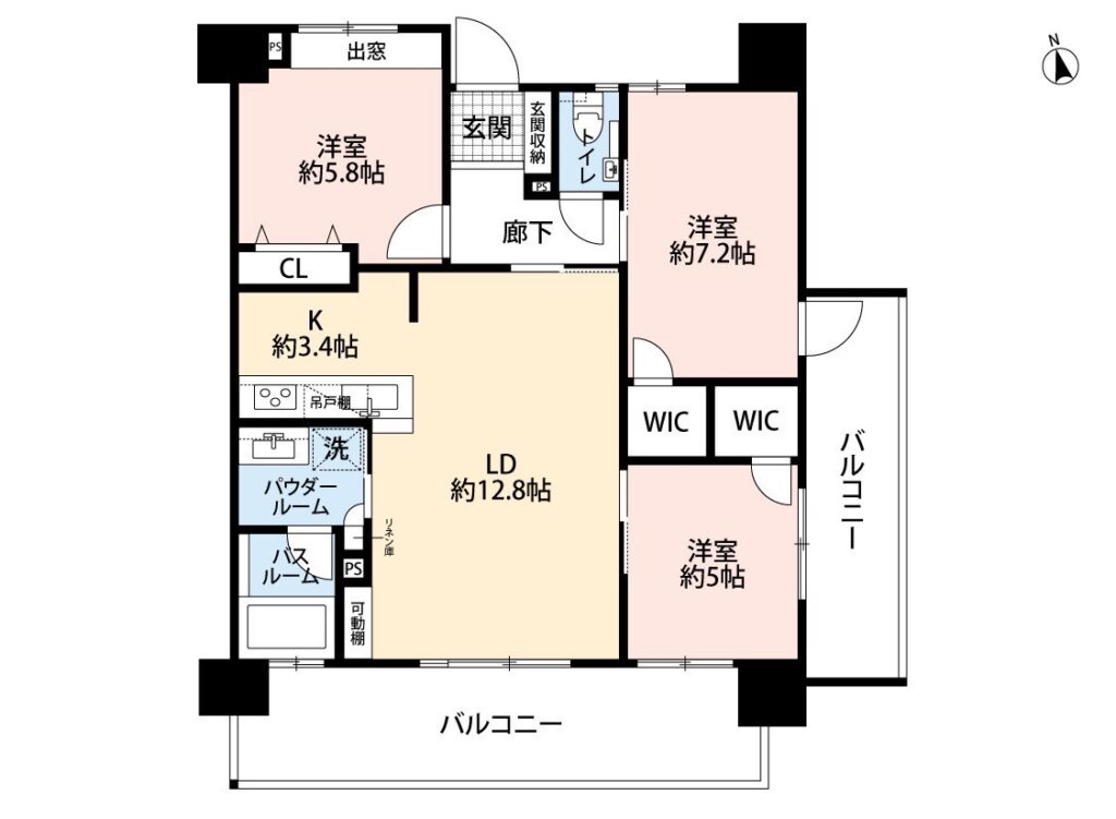 3LDK(洋 7・5.8・5 / LDK 16.2)